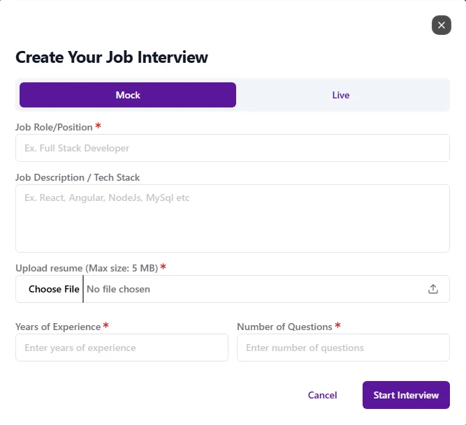 It’s quite simple…The moment you choose, you interview (Mock or Live). You have to add all the necessary details according to your role.