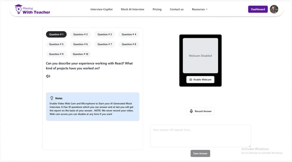 “I’ve tested a few different tools for interview prep, and this one stood out because it let me practice speaking my answers out loud instead of just typing. Hearing myself respond made me realize where I was rambling. That small feature made it more useful for me than others I tried.“
